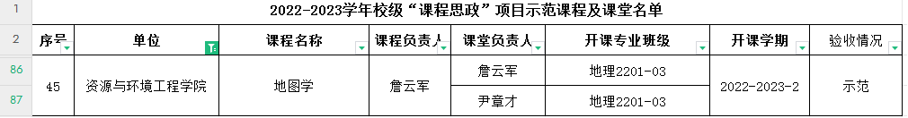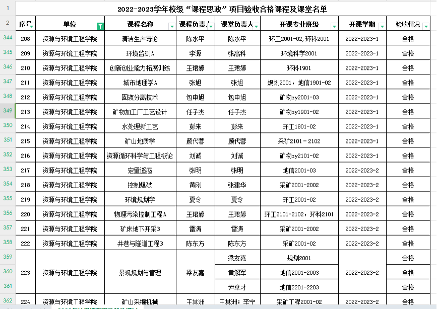 根据《武汉理工大学“课程思政”建设实施方案》《关于启动2022-2023学年本科校级“课程思政”示范课程项目验收工作的通知》要求,经教师申请、学院(部)推荐、专家评审、学校审核等环节,确定458门课程和808个课堂验收合格,其中50门课程认定为校级“课程思政”示范课程,89个课堂认定为校级“课程思政”示范课堂,具体名单请见附件。