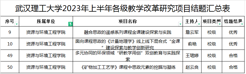 附件:武汉理工大学2023年上半年各级教学改革研究项目结题汇总表