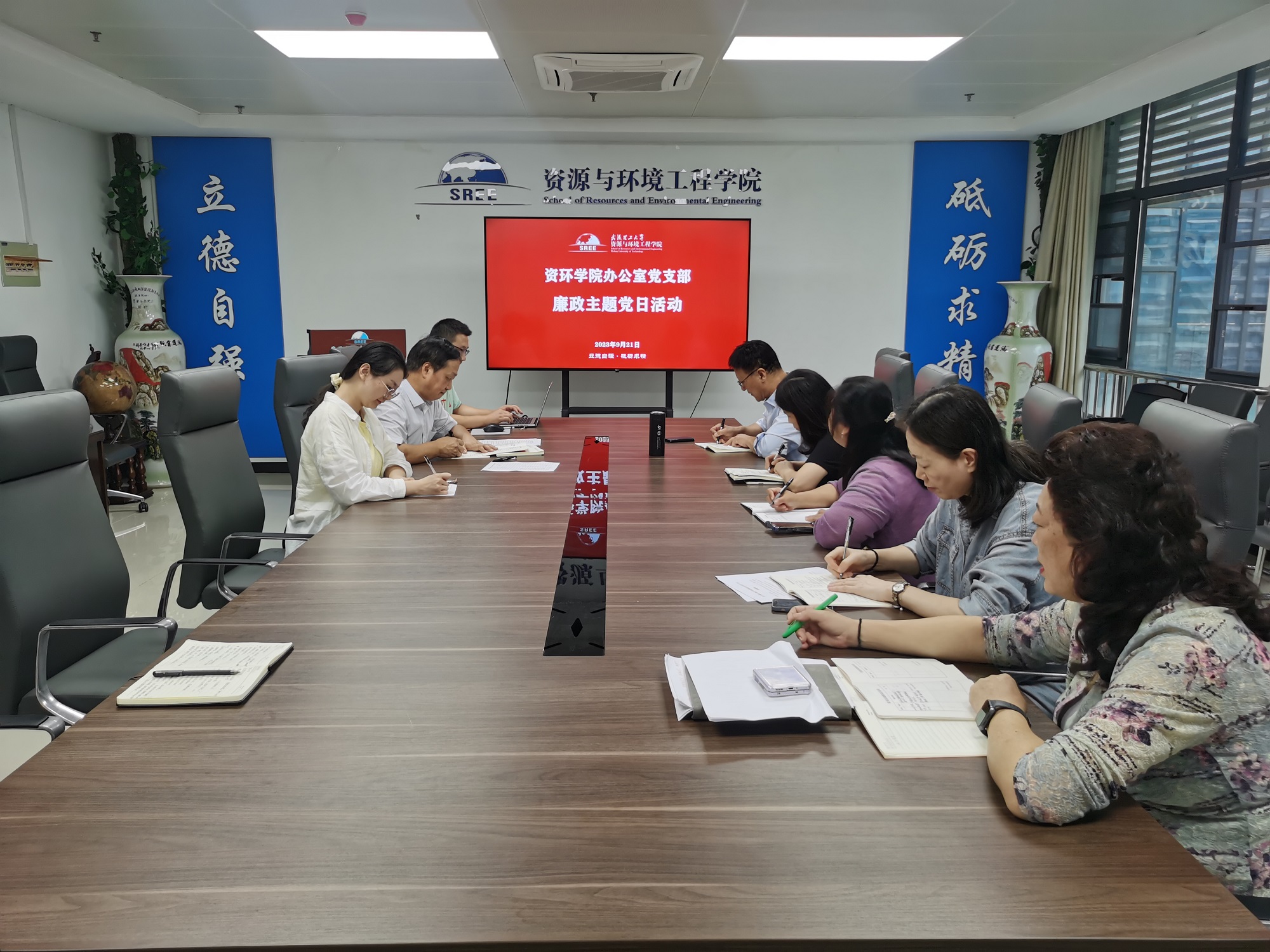 9月21日下午,资环学院办公室党支部在南409会议室召开廉政主题党日活动。党支部全体成员参加活动,支部书记赵和平同志主持活动。