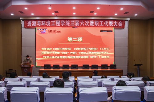 2022年12月30日,资源与环境工程学院三届六次教职工代表大会在学院报告厅顺利召开,院教职工代表、列席代表和特邀代表等40余人通过线上线下结合的方式参加了会议。