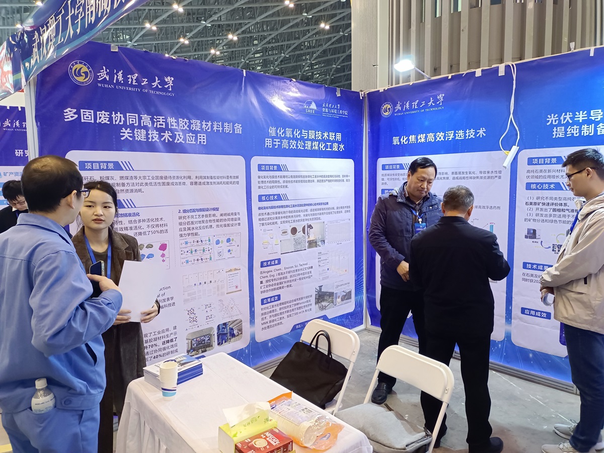 展览会现场,学院领导、项目团队联系人与相关参展单位作了技术交流,达成了十余项技术合作意向。学院还精心设计了《学院科研项目及成果简介手册》,对学院概况、研究方向、科研实力等作展示,重点推介了碳基材料或煤化工用高纯煤制备产业化技术、煤炭伴生稀贵金属绿色提取技术、氧化焦煤高效浮选技术、多固废协同高活性胶凝材料制备关键技术及应用、外场强化复杂难处理资源中战略金属提取技术、光伏半导体用高纯石英提纯制备产业化技术、矿山开采碳排放核算与减碳决策管理平台技术、催化氧化与膜技术联用用于高效处理煤化工废水、高纯石英砂精深纯化技术等9个科研项目。