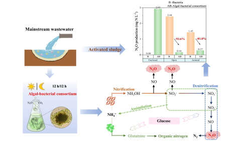近日,武汉理工大学资源与环境工程学院彭来教授课题组在环境领域权威学术期刊Water Research上发表了题为“Nitrogen Removal by Algal-Bacterial Consortium during Mainstream Wastewater Treatment: Transformation Mechanisms and Potential N2O Mitigation”的研究论文(论文链接:https://doi.org/10.1016/j.watres.2023.119890)。系统研究了菌藻共生体在封闭式、开放式和曝气式反应器中处理城镇污水时的氮转化途径及其氧化亚氮(N2O)减排潜力。文章的共同第一作者分别是李琦(博士研究生)和徐一峰副教授,通讯作者是彭来教授,第一通讯单位为武汉理工大学矿物加工与环境湖北省重点实验室。