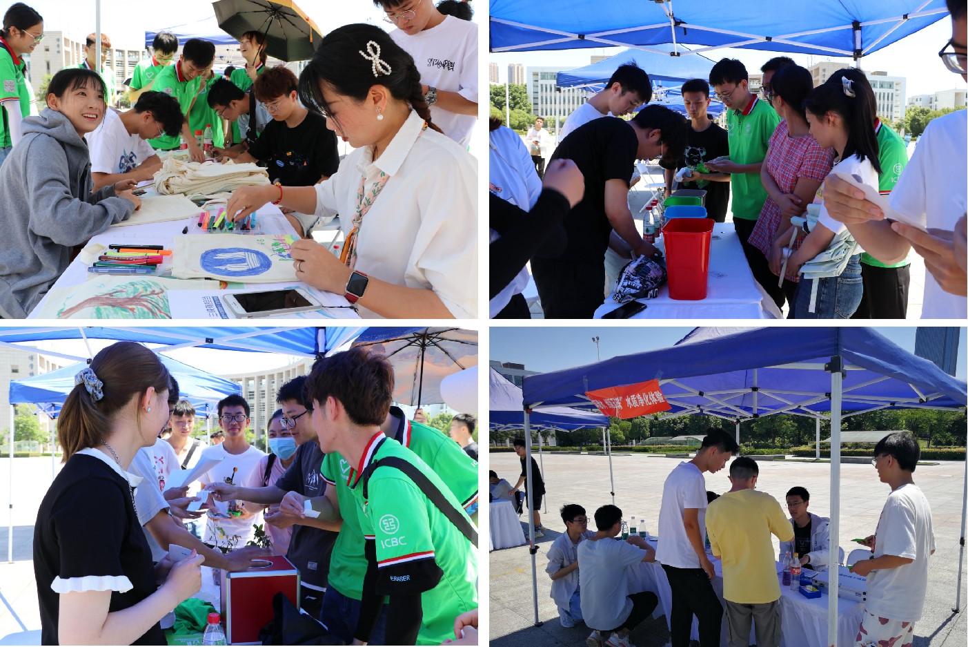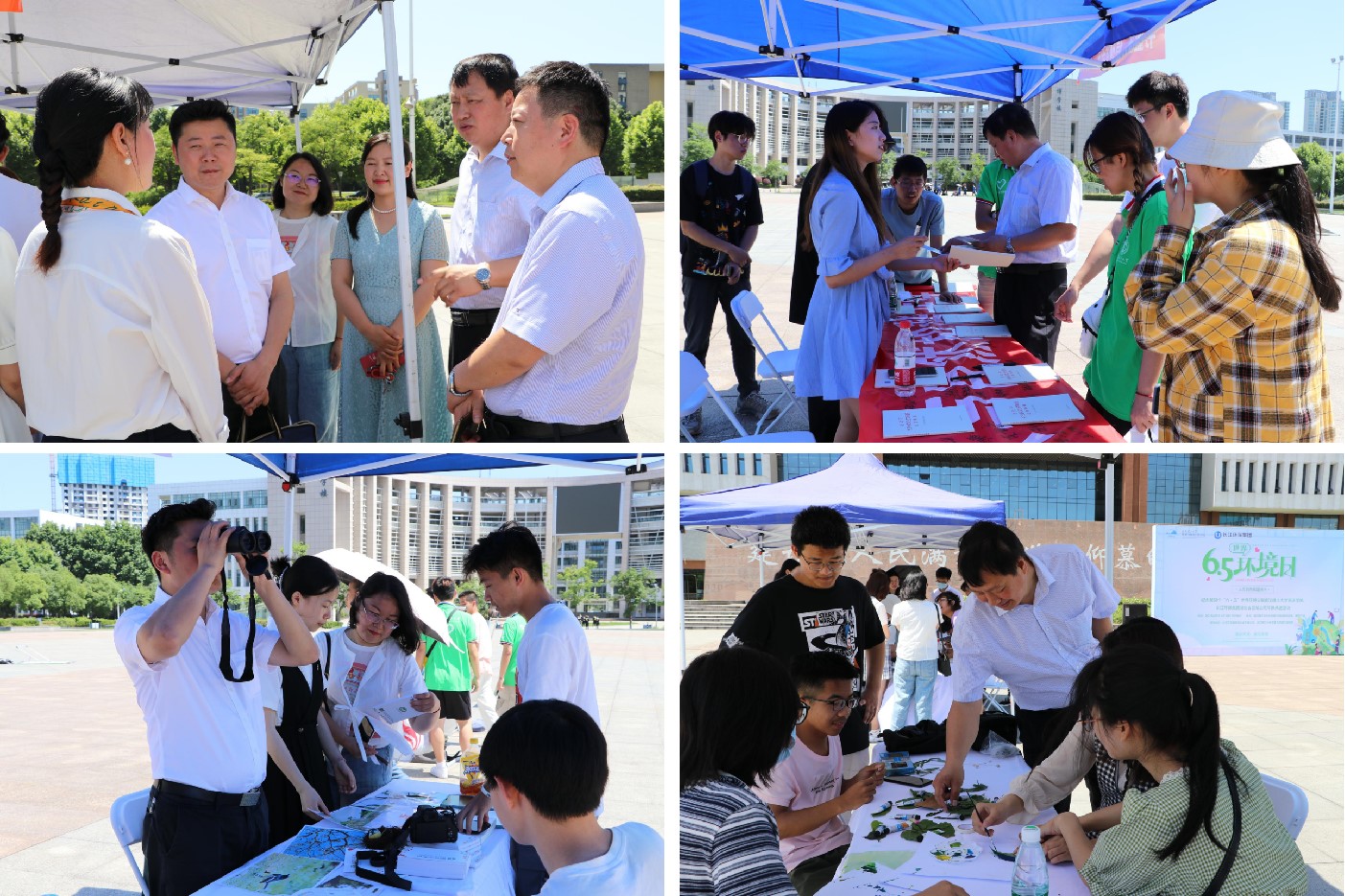 围绕今年世界环境日主题,我院以第21届“六·五”环保科技文化节为契机,以“美丽中国”为引领,紧密围绕科普、体验、生活、创新四个方面,精心设计了“绿韵共赏——环保文化展示区”“绿芸共创——环保活动互动区”与“绿蕴共倡——和谐共生倡议区”三个活动大区。垃圾分类知识竞答、盆栽种植、叶拓制作、观鸟体验、水质检测、DIY专属环保手提袋设计、建言献策,各类活动精彩纷呈。环保的热情在这个明媚的上午遍地开花。