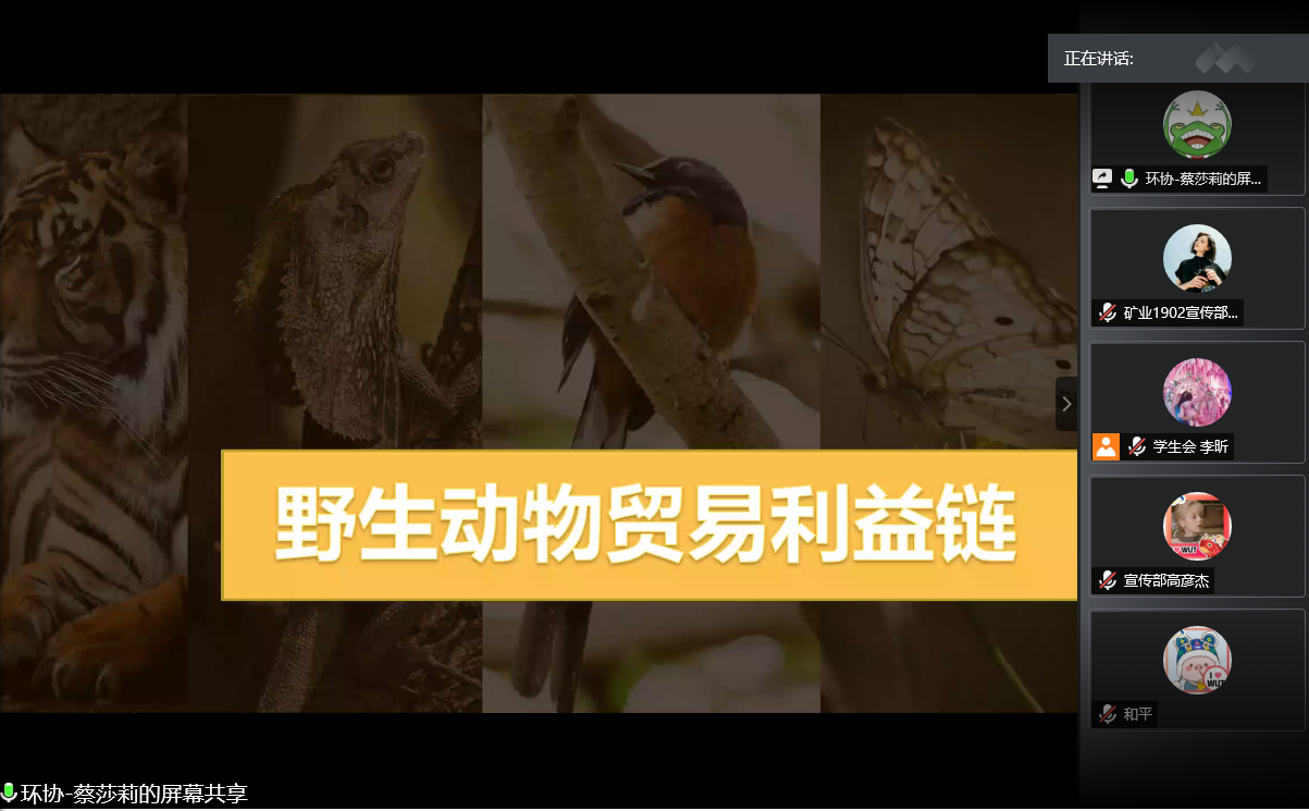 环境保护协会会长蔡莎莉从野生动物贸易的内涵及发展、链条现状、非法贸易原因、案例分析及国家采取的措施五个方面为大家详细的展示非法集团伤害野生动物、建立野生动物非法贸易利益链条的全过程。她呼吁大家关注野生动物的保护,拒绝野生动物制品,重视野生动物对于自然环境的重要性。