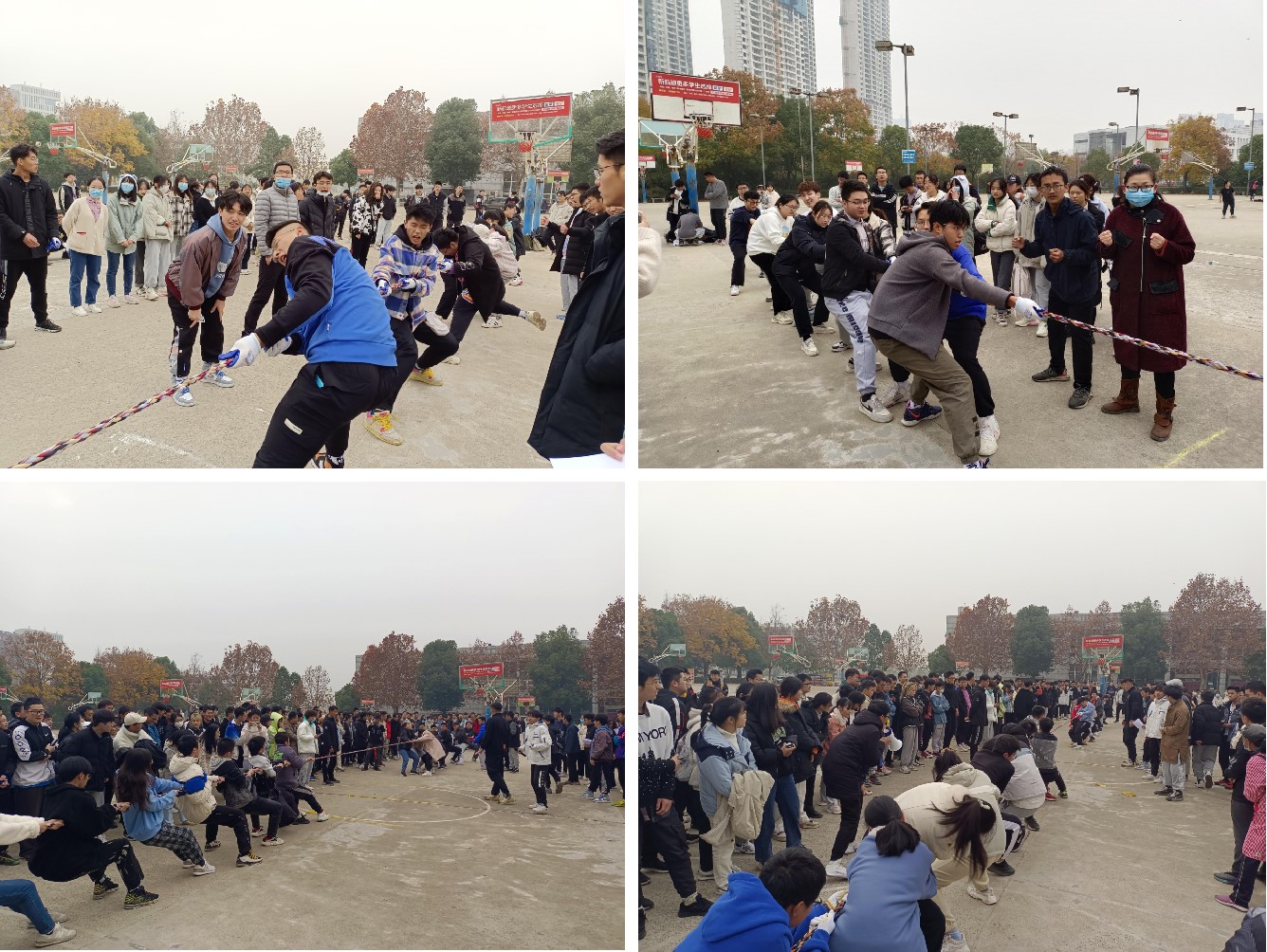 下午的学生组织赛同样精彩,各学生组织同学团结协作,奋力拼搏,为组织取得不错成绩。最后,我院青年志愿者协会拔得头筹获得冠军,同学们也表示要将比赛中的积极态度和团结一致的精神带到学生工作中去。随后是四向拔河趣味赛项目,不仅展示出同学们团结的力量,还表现出了大家智慧和随机应变的能力。最后,各组织进行了拍照纪念环节,为本次活动划上了一个圆满的句号。