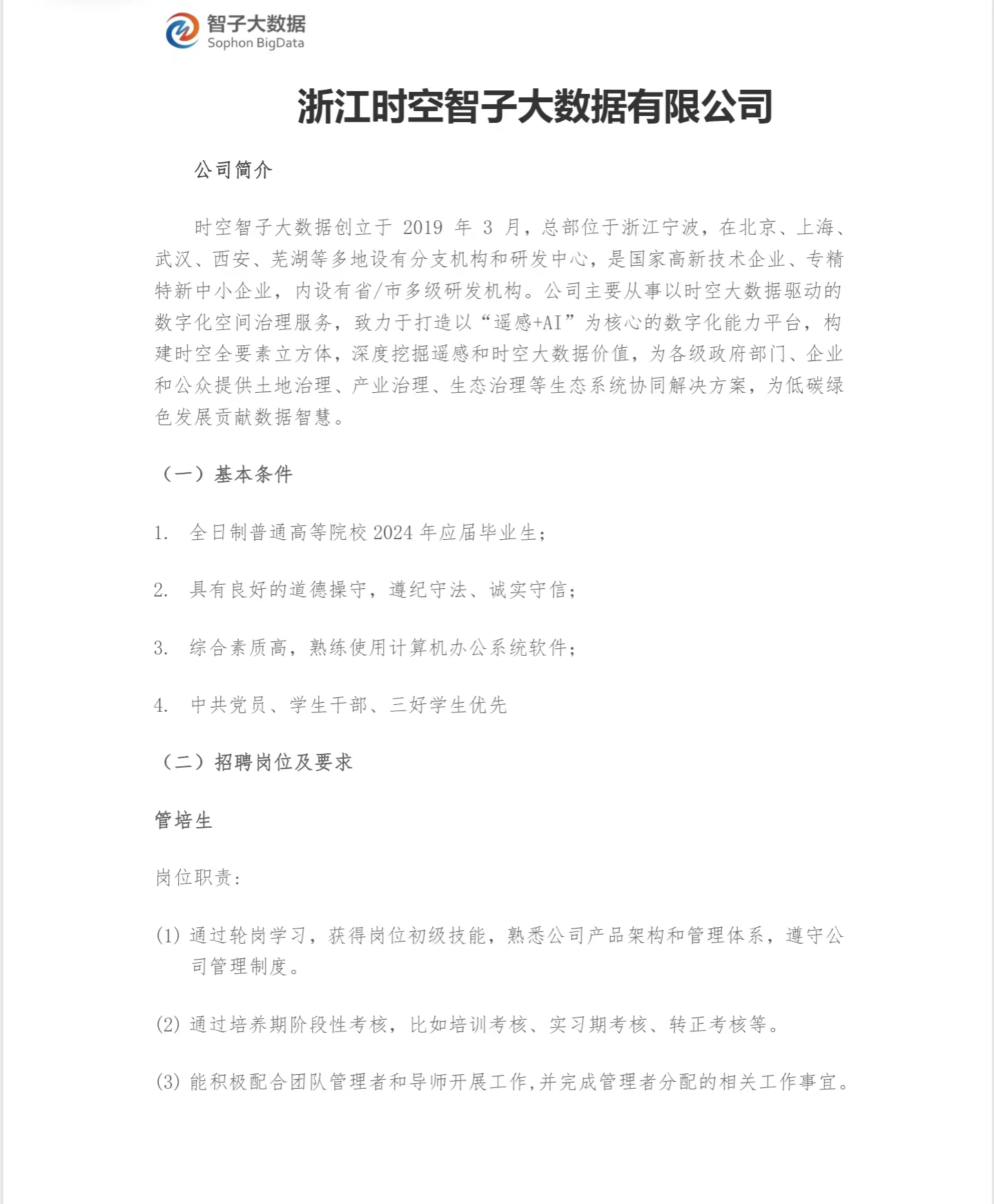 【就业信息】浙江时空智子大数据有限公司春季招聘