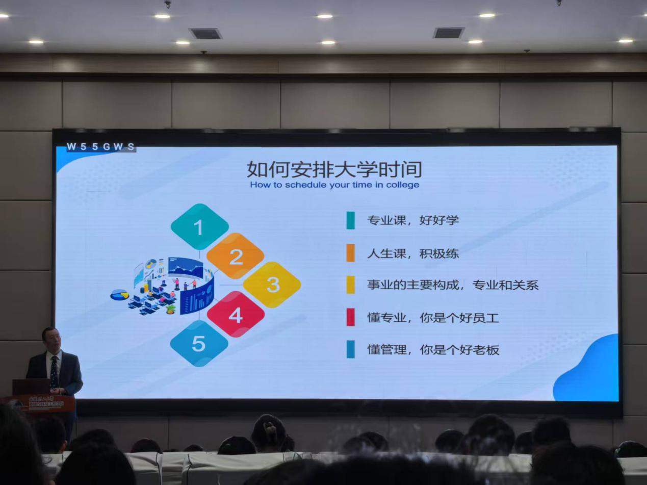 在“如何安排大学时间”专题环节,培训内容指出,大学生应平衡好专业学习与社会实践,既要成为“懂专业的好员工”,也要培养“懂管理的好领导”。熊伟老师作为特聘职业生涯教师,他用专业的术语详细的讲述了大学生学会时间管理的重要性,现场同学积极参与互动,反响热烈。