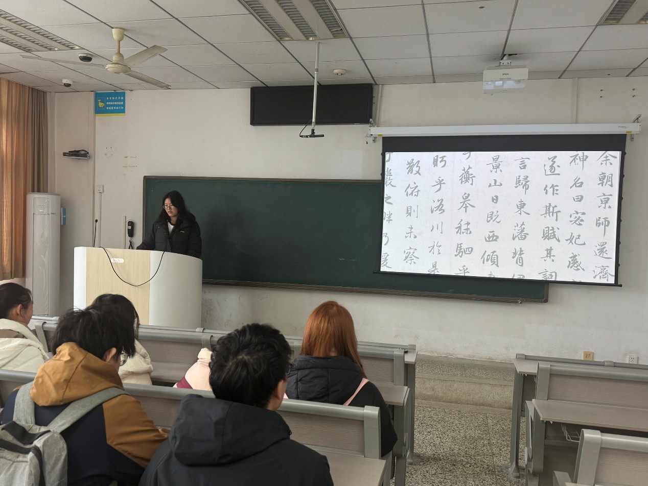 讲座重点介绍了中国书法史上最具代表性的流派与名家。从王羲之的“飘若浮云,矫若惊龙”到颜真卿的“筋骨丰满,气势磅礴”,从苏轼的“自然洒脱”到米芾的“狂放不羁”,主讲人通过大量作品图片展示,结合历史背景与艺术特点分析,让同学们初步掌握了书法鉴赏的基本方法。“我最感兴趣的是不同书法家性格与作品风格的关系,”团支书表示,“这让我们理解到,书法不仅仅是技巧的展示,更是书法家精神世界的投射。”