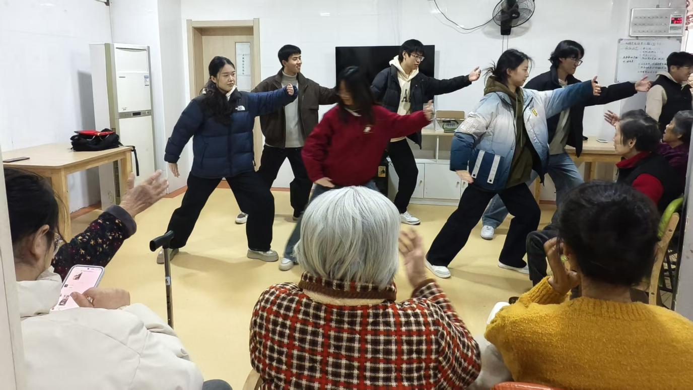 为进一步拉近与老人们的距离,活动设置趣味小游戏环节。同学们耐心地向老人们讲解游戏规则,陪着他们一同参与,现场欢声笑语不断。老人们积极投入,在互动中收获快乐,也切实感受到同学们的贴心与热情。