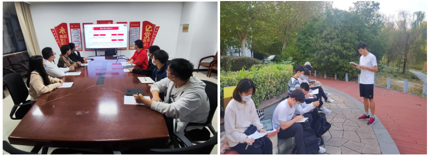除集中授课环节外,本期发展对象培训班采取线上线下相结合的学习方式,继续坚持“个人自学、集中领学、专题研学、交流互学、测试促学”五位一体的学习模式,将“学习强国”、理工党员网的线上自主学习与学习小组线下讨论相结合,广泛开展学习贯彻党的二十大精神专题活动,并结合下基层、察民情、解民忧、暖民心实践活动相关要求,分小组开展疫情防控、环境美化、安全校园等方面的社会实践活动,不断提高党校学习效果,切实提升党员发展质量。