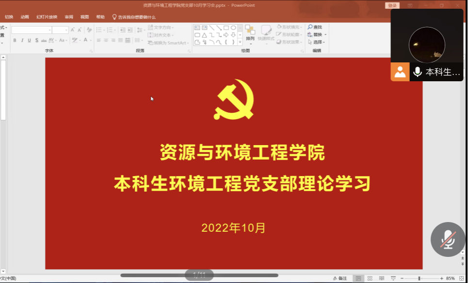 2022年10月31日晚,资环学院本科生环境科学党支部线上开展了理论学习会,认真学习贯彻党的二十大精神。