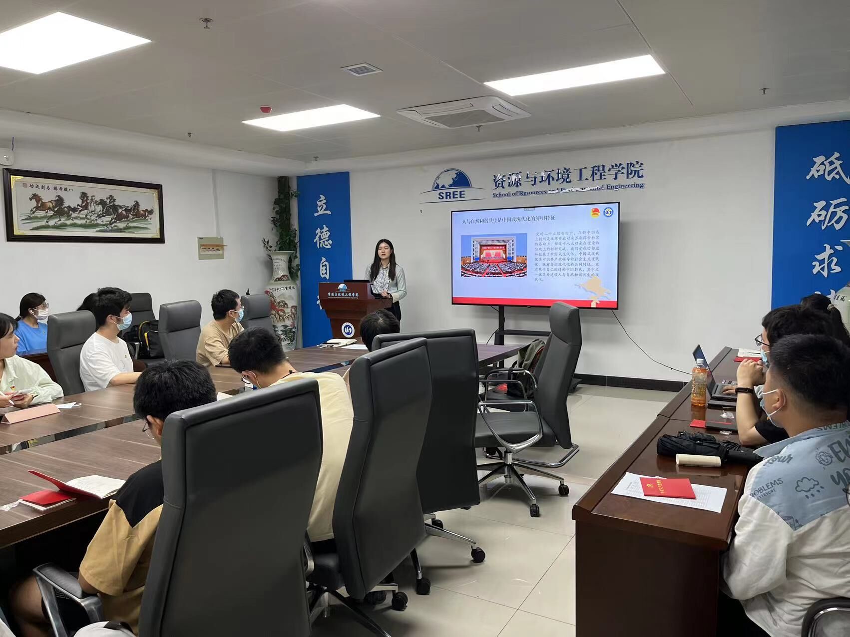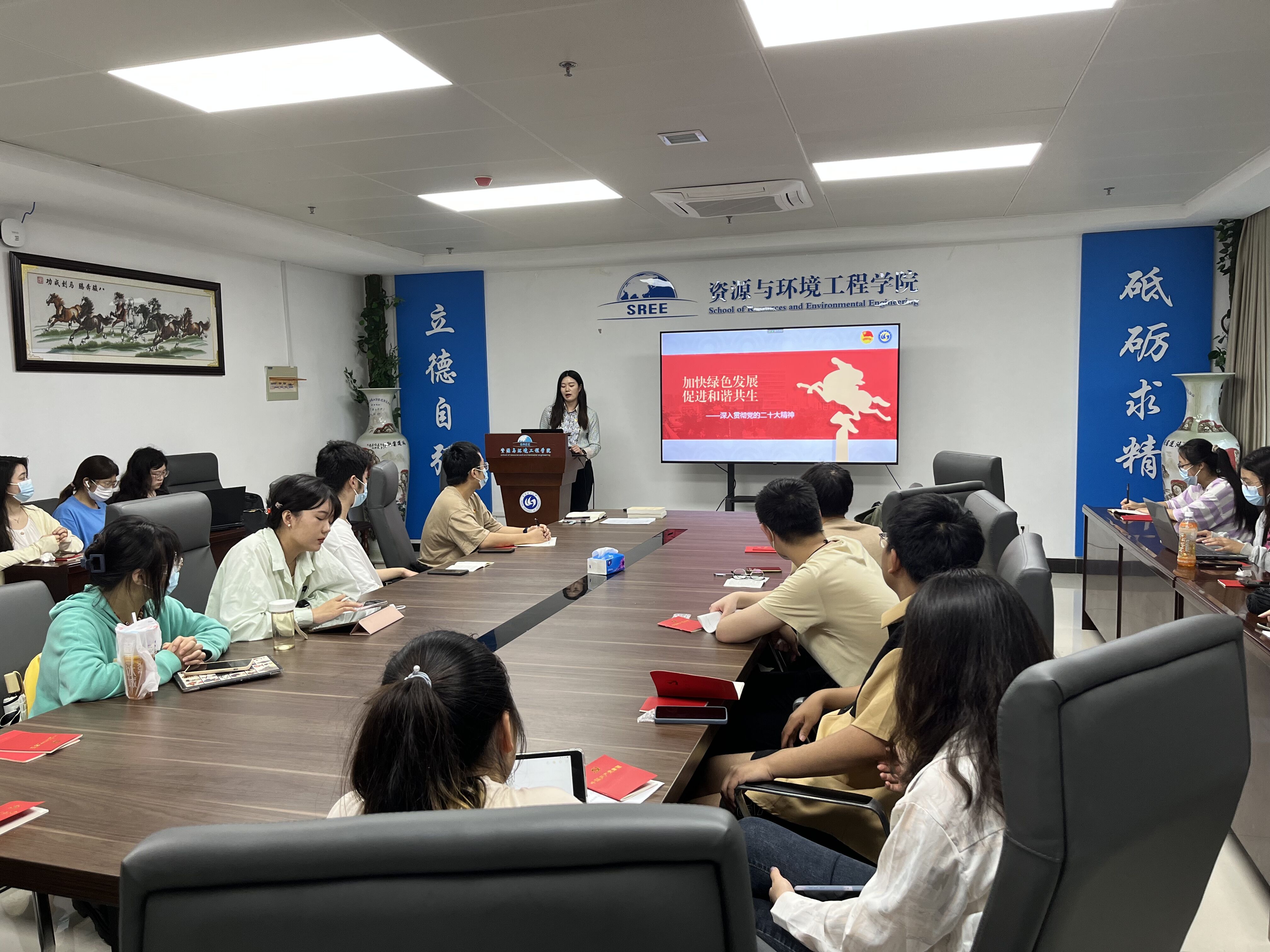 5月26日下午1时,为深入宣传贯彻党的二十大精神,以新理念新行动重塑新文化,促进大学生增强生态环保意识、投身生态文明建设,资环学院本科生地理科学党支部以六五环境日为契机,于学院南楼409会议室开展“加快绿色发展,促进和谐共生”支部书记讲党课活动,对党的二十大精神进行了深入学习。此次活动由党支部书记邢慧主持,全体支部党员参加。