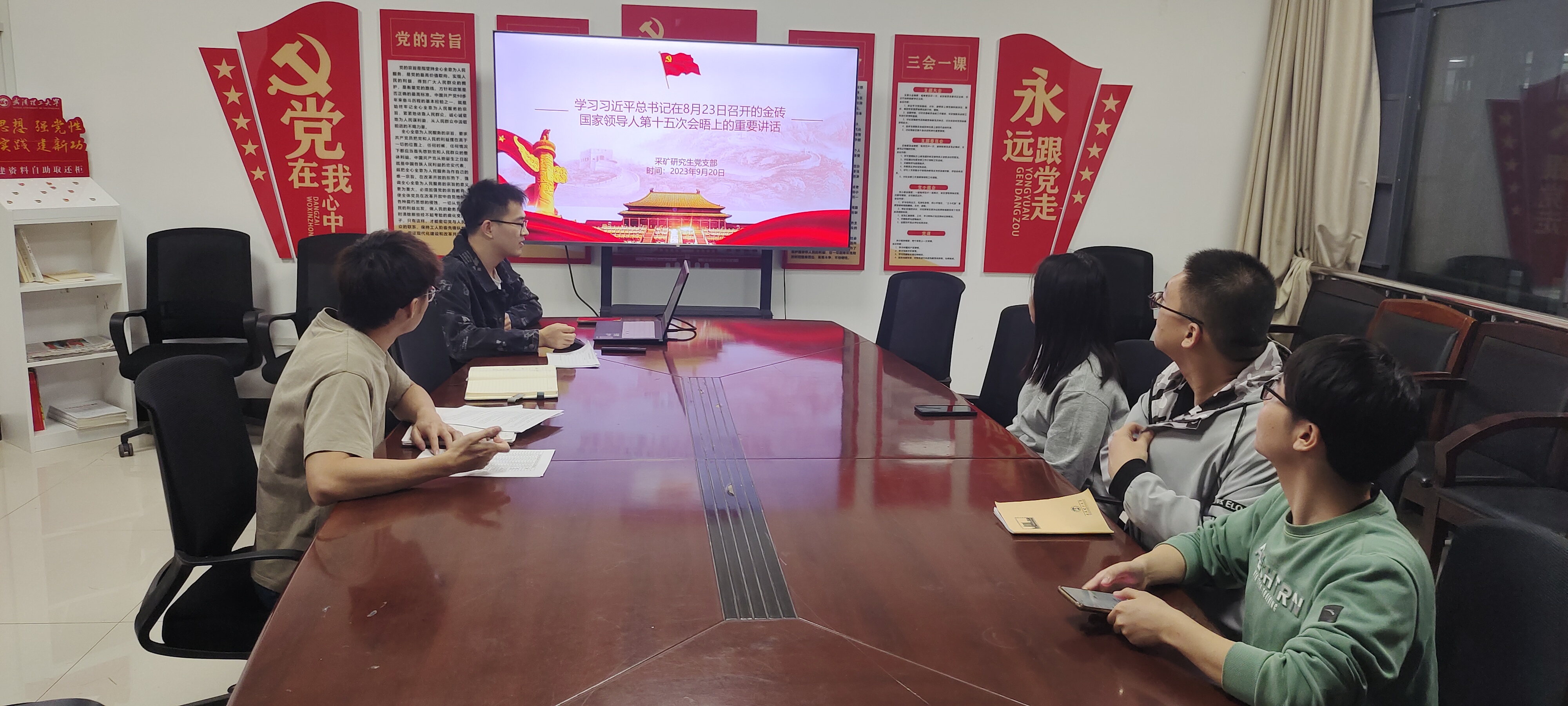 9月20日,我院研究生采矿党支部在资环学院南楼402活动室召开九月组织生活会,会议学习内容为:习近平总书记在金砖国家领导人第十五次会晤上的重要讲话。