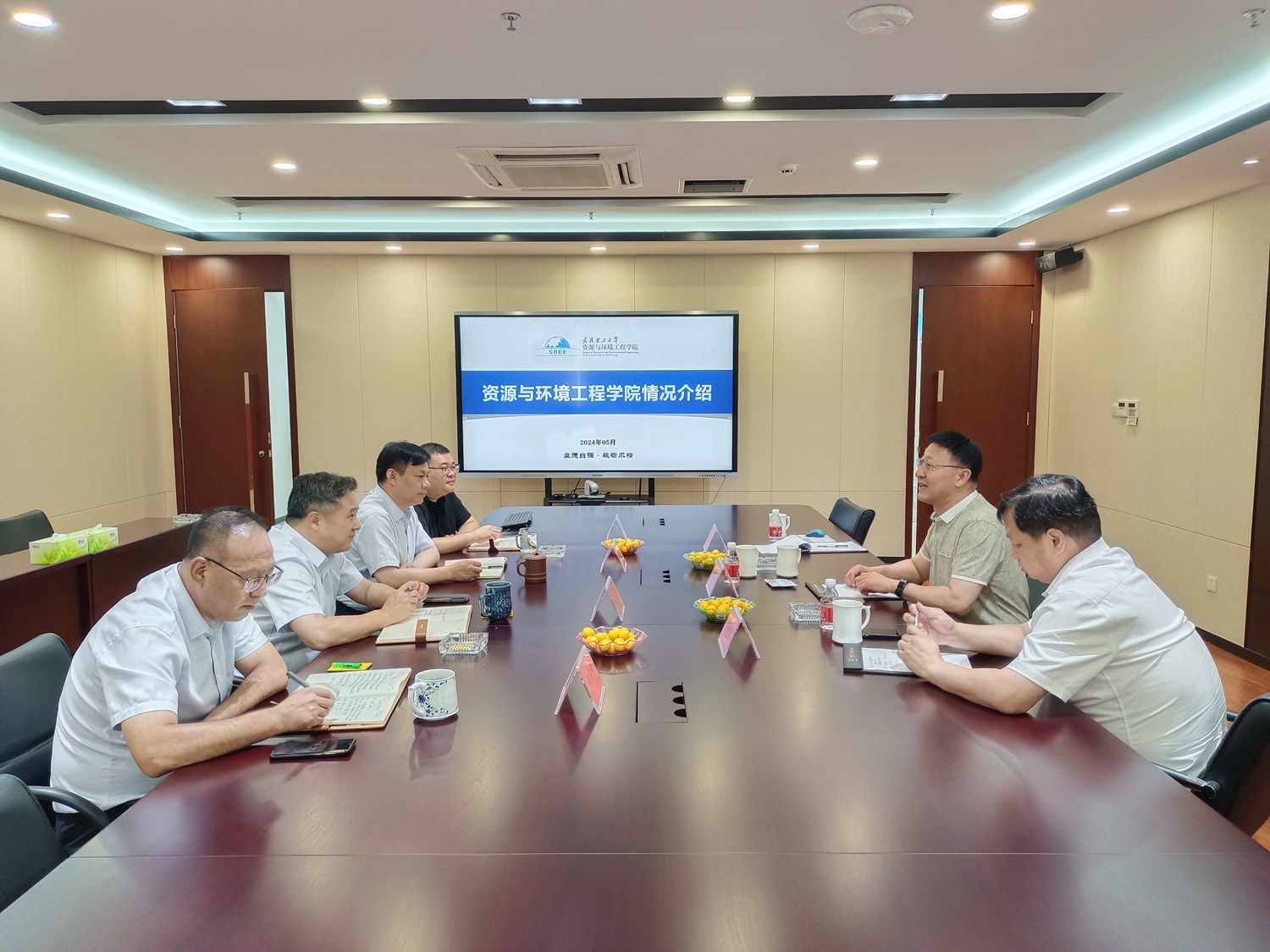 杨文东书记对公司领导百忙中抽出时间接待走访表示了衷心感谢,并通过学院宣传片介绍了学院的发展情况。杨书记表示,兖州中材建设有限公司与资环学院有着相同的行业背景和相似的发展经历,双方现有的合作非常成功有效,可谓校企合作中的典范;走访行业重点企业是学校“六访六促”工作的重要部分,旨在了解行业对学校在人才培养、科学研究等方面的意见和建议,不断提高学校人才培养质量和服务社会能力;双方通过深入座谈交流可进一步加强校企双方在人才招聘、学历提升、企业职工培训、科技项目联合申报研发、共建联合实验室、文化阵地建设等方面的深入合作,共促双方高质量发展。马中杰副院长重点介绍了学院科学研究方面的优势特色。