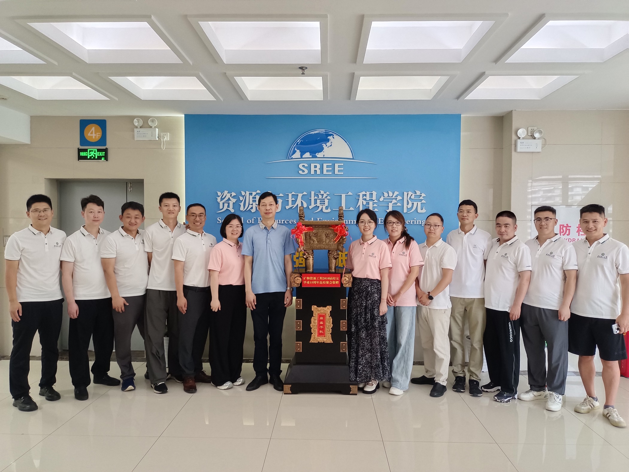 座谈会最后,举行了“矿物资源2010届校友毕业15周年返校纪念品”捐赠仪式。