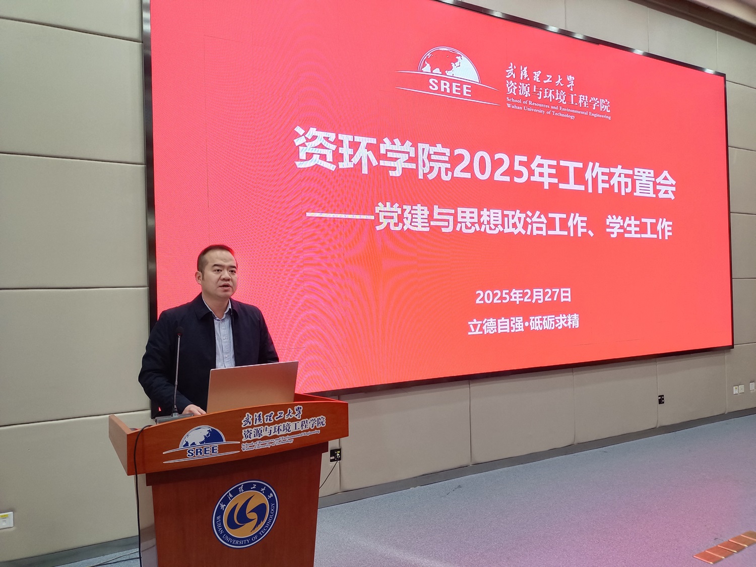 2月27日下午,资环学院2025年工作布置会在学院北三楼报告厅召开。学院领导班子成员及全体教职工参加会议,会议由院党委书记刘东主持。院长包申旭、党委书记刘东分别就学院行政工作和党建工作进行总结与部署,为新一年高质量发展锚定方向、凝聚共识。
