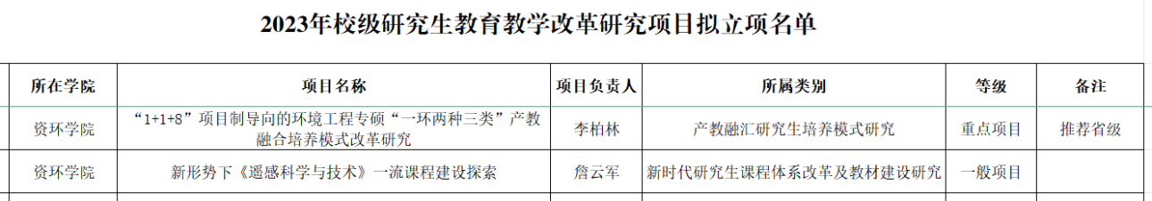 【课程资源】2023年校级研究生教育教学改革研究项目拟立项名单公示