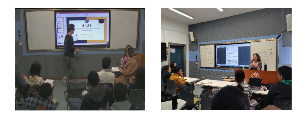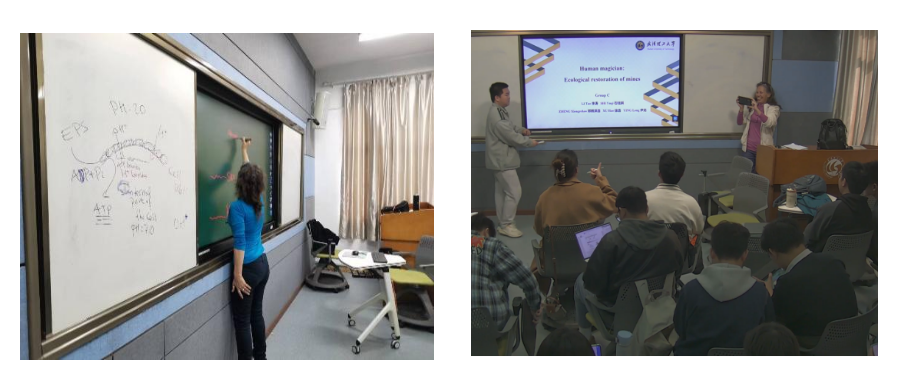 此次国际化课程上课时间为2023年11月8日-11月23日,地点为武汉理工大学专用录播室。来自墨西哥圣路易斯波托西自治大学的J. Viridiana García Meza教授全程为学生们现场教学,以矿物环境与修复为例,从水、气、固三方面对环境生态领域的基础理论进行授课,并穿插展示自己的研究成果,寓教于乐,融学于趣,化教于心,课堂教学环节除老师的理论授课外,还注重与学生之间的互动,课堂气氛热烈。