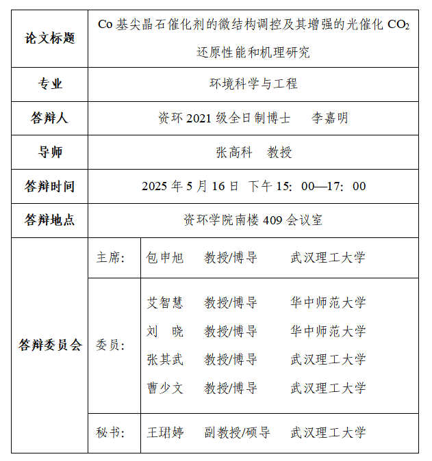 【资环学院】博士李嘉明学位论文答辩公告