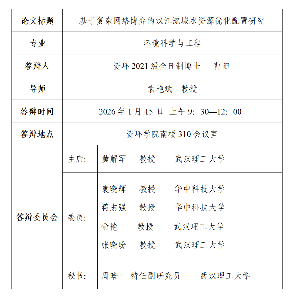 【资环学院】博士学位论文答辩公告