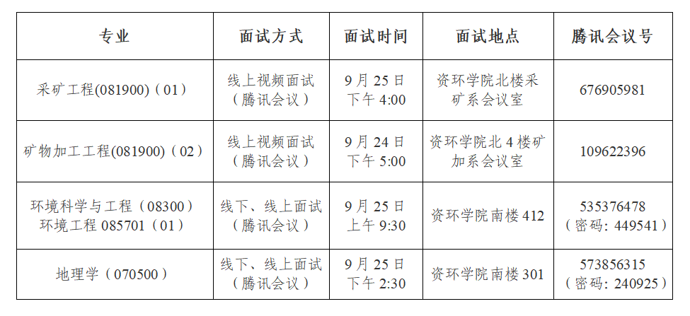 根据武汉理工大学资源与环境工程学院 2025 年推荐免试攻读硕士学位(和直接攻读博士学位)研究生招生简章要求,经考生网上报名、学院资格初审,组织面试考核,各专业面试安排如下: